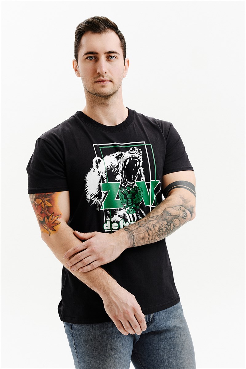 Футболка прямая, свободная, средней длины, с округлой горловиной. Рукав короткий. Горловина обработана эластичной обтачкой.