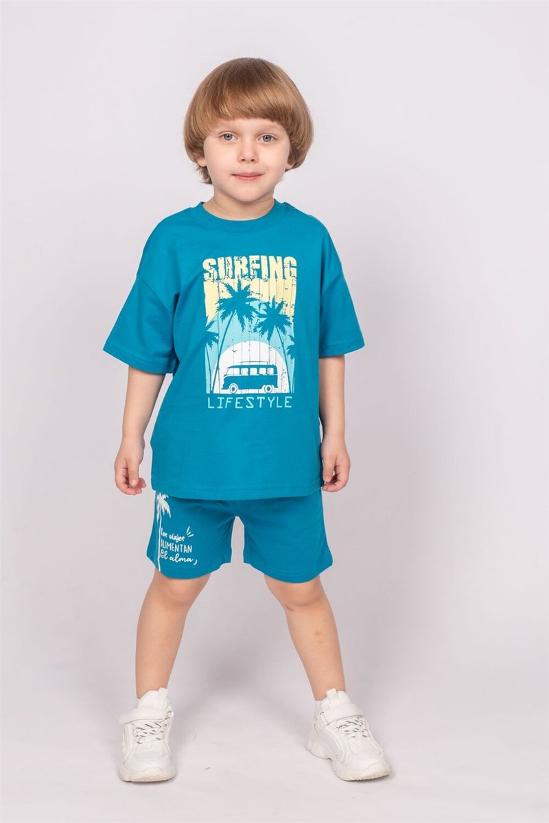 Футболка для мальчика свободного силуэта (оверсайз) с коротким рукавом. Горловина круглая, обработана воротником из рибаны. Горловина спинки внутри укреплена бейкой из кулирки. Низ изделия и рукава обработан швом вподгибку. На полочке принт шелкография. Надпись переводится как Серфинг-стиль жизни.