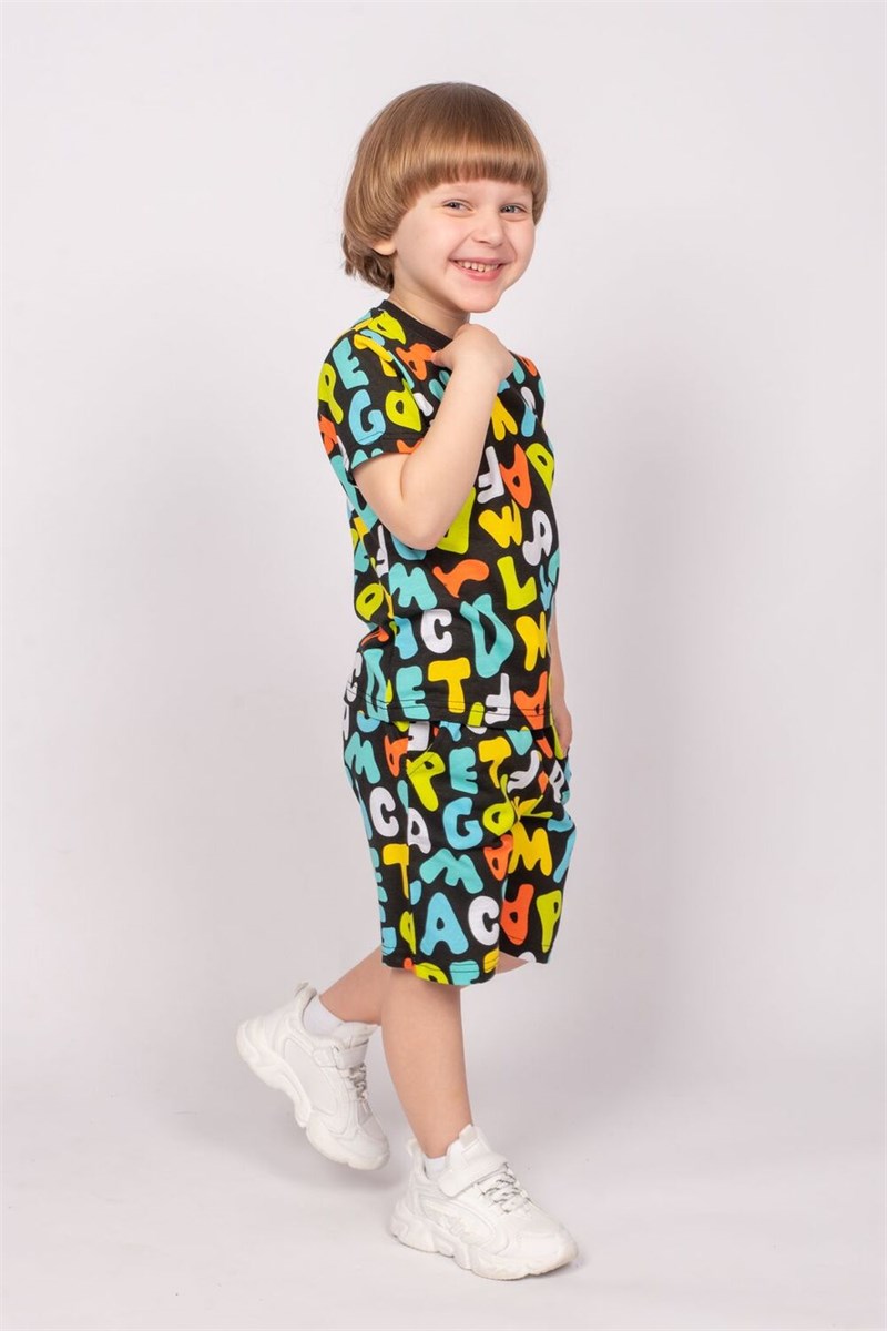 Футболка для мальчика из набивки, прямого силуэта с втачным коротким рукавом. Горловина круглая, обработана воротником из рибаны. Горловина спинки внутри укреплена бейкой из кулирки. Низ изделия и рукава обработан швом вподгибку.