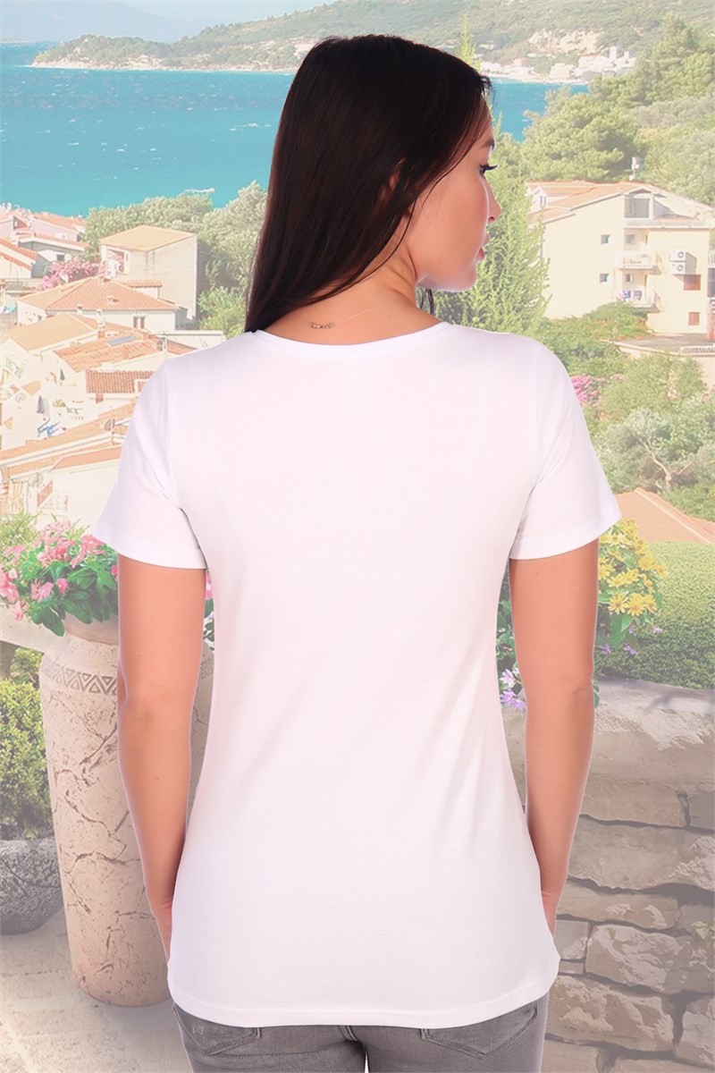 Футболка из мягкого хлопка. Горловина обработана двойным кантом. Низ изделия и рукава подогнуты. Нежный рисунок с контурами из объёмного пуфа дополняет образ.