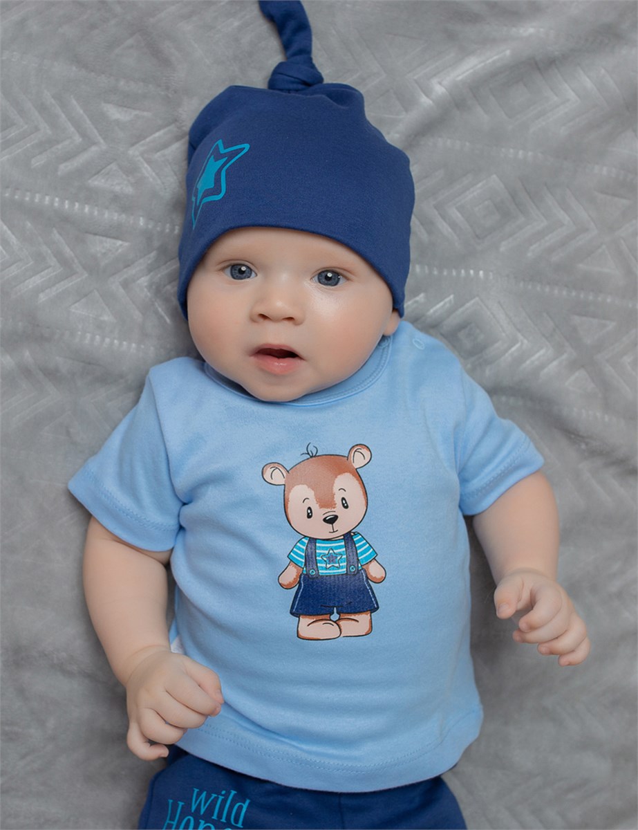 Футболка из коллекции Одди предназначена для новорожденных и малышей, выполнена из интерлока (100% хлопок), материал средней плотности, нежный и эластичный, пропускает воздух и сохраняет тепло. Застежка на плече позволит в считанные секунды переодеть малыша. Стильный принт, нанесённый методом шелкографии на ткани. Модель будет идеально сочетаться со штанишками из одноимённой коллекции.