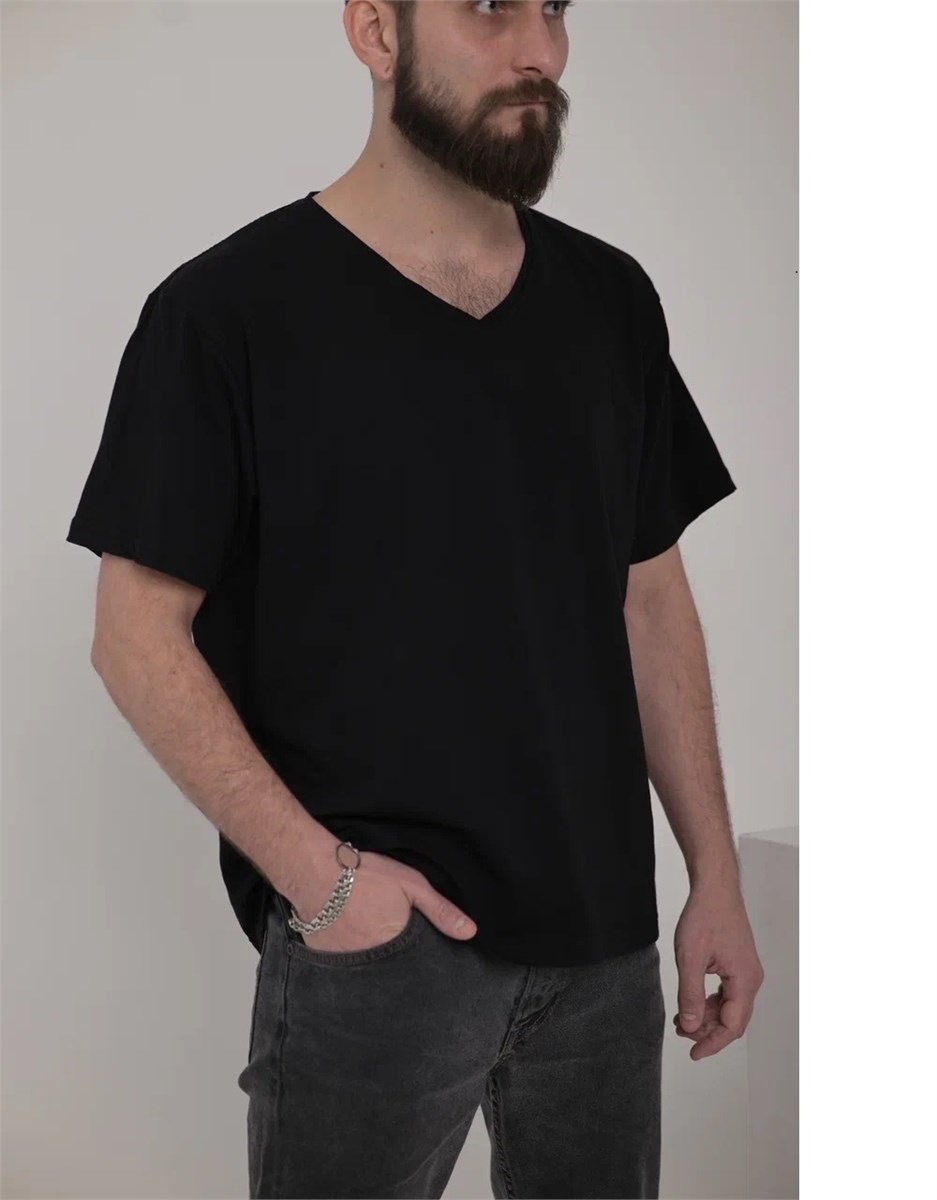 Футболка мужская изготовлена из мягкого хлопкового трикотажа качества пенье. Футболка однотонная полуприлегающего силуэта, длиной до середины линии бедер, с v-образным вырезом горловины, коротким рукавом, полочка и спинка футболки прямые цельнокроеные. Удобный для мужчины крой не стесняет движения. В составе ткани есть эластомерные нити, это позволяет не вытягиваться в процессе носки и сохранять форму после стирки. Футболка изготовлена с соблюдением все норм, товар сертифицирован, экологичен и безопасен.
