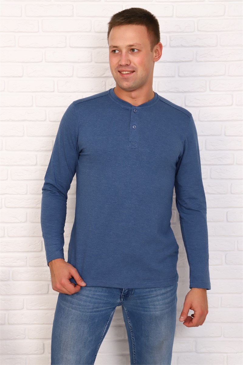 Футболка мужская полуприталенного силуэта, с длинным рукавом. Рукав притачной. Воротник на манжете, планка с пуговицами.