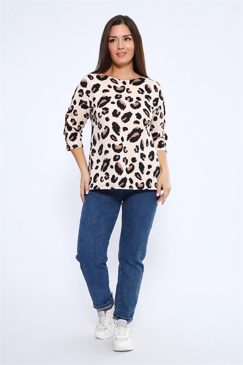 Футболка женская свободного прилегания с рукавами 3/4, украшенная пуговицами на рукавах.