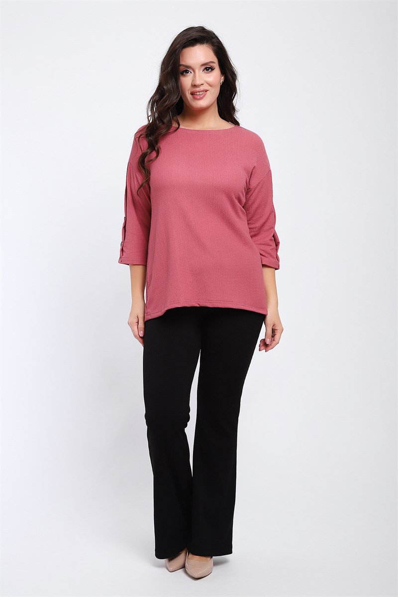Футболка женская свободного прилегания с рукавами 3/4, украшенная пуговицами на рукавах.