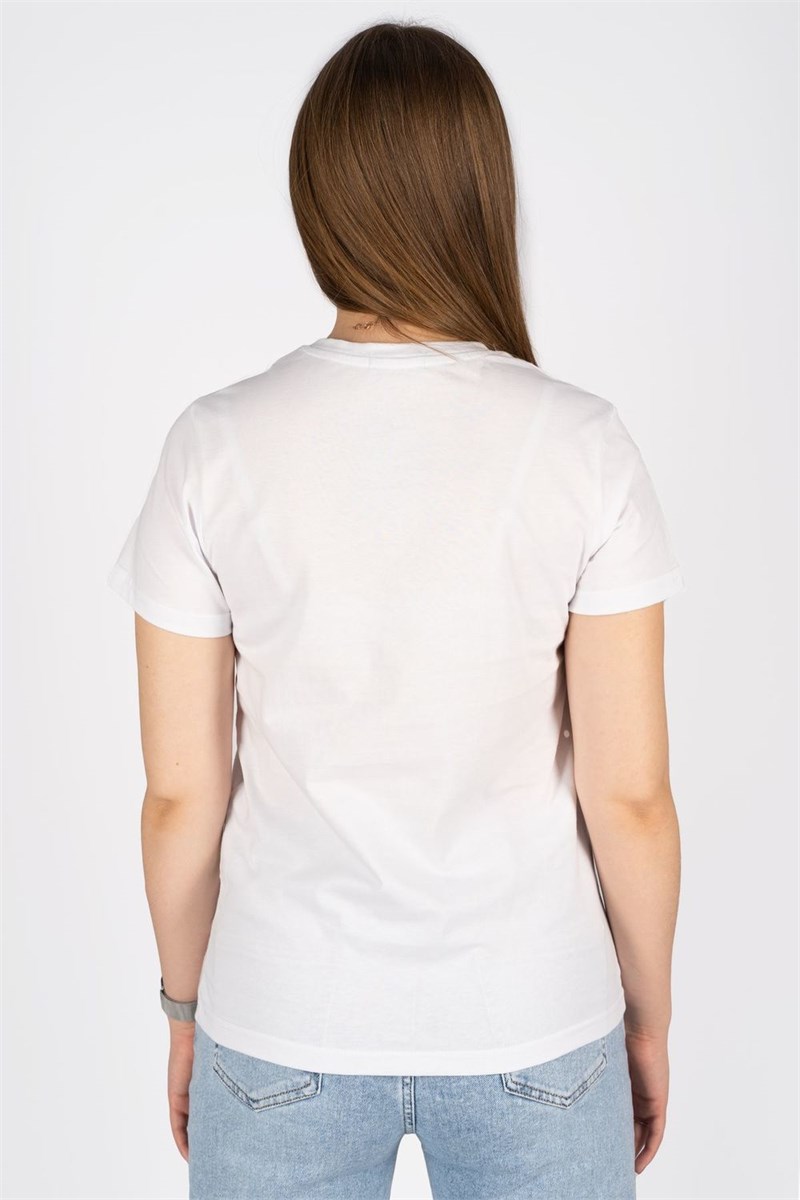 Футболка - это классика современного гардероба любой девушки. Эта базовая белоснежная футболка с ярким принтом в виде цветка смотрится круто с джинсами, юбками и брюками любых цветов. Прямой силуэт, втачной рукав, горловина круглая, обработана воротником из кулирки, в цвет изделия. Горловина по полочке отстрочена на 0,1 нитками в цвет изделия. Горловина спинки внутри обработана настрочной планкой из кулирки. Низ изделия и рукавов обработан швом вподгибку. На полочке фотопринт с шелкографией.