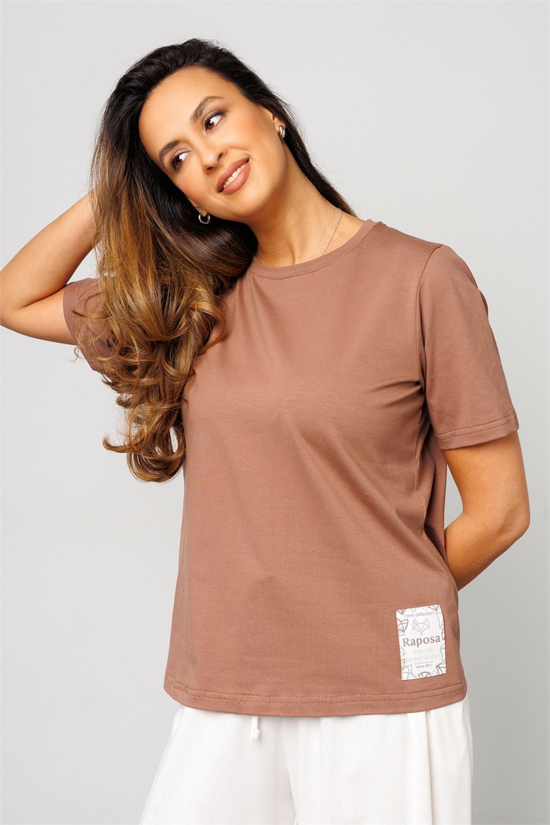 Футболка женская от Raposa это идеальный выбор для современных девушек, ценящих комфорт и стиль. Изготовленная из мягкого и дышащего материала, состоящего из 92% хлопка и 8% лайкры, она подарит Вам ощущение легкости и свободы движений. Модель с коротким рукавом и свободным кроем оверсайз идеально подходит для жарких летних дней, а также станет отличным вариантом для домашней одежды. Благодаря универсальному коричневому цвету и отсутствию рисунка, однотонная футболка легко сочетается с любыми элементами гардероба, под пиджак. Хороша как футболка в офис женская или блузка повседневная. Наличие нашивки с названием бренда Raposa добавляет стильный акцент. Кофточка подходит для полных девушек больших размеров плюс сайз до 54 и 56 и для высоких и невысоких, обеспечивая комфортную посадку. Футболка с принтом станет незаменимой как для повседневной носки, так и для занятий спортом, фитнесом, на физкультуру в школу или просто для отдыха на пляже. Благодаря натуральному составу хлопка, футболка мокко мусс приятна к телу и не вызывает аллергических реакций. Модель прекрасно подойдет для беременных женщин, а также для девушек-подростков, которые предпочитают стиль кэжуал или y2k. Футболка Raposa это элегантная классика и базовый элемент гардероба, который станет Вашим верным спутником в любой ситуации и поможет в создании нарядного образа на каждый день.