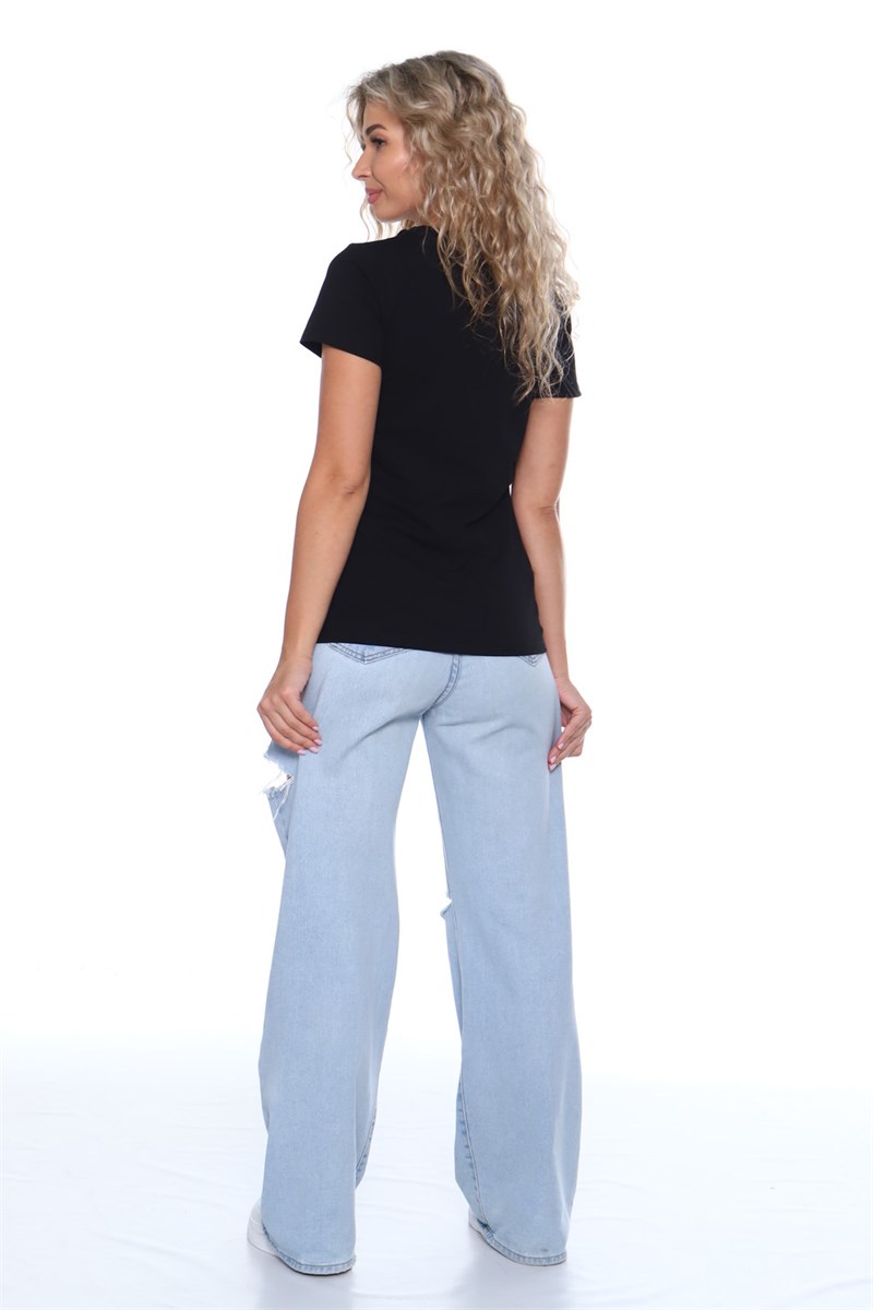 Футболка женская с оригинальным принтом, из хлопковой ткани с лайкрой. Ткань держит форму, не вытягивается, приятная на ощупь. Стильная футболка оригинального фасона. Посадка свободная.