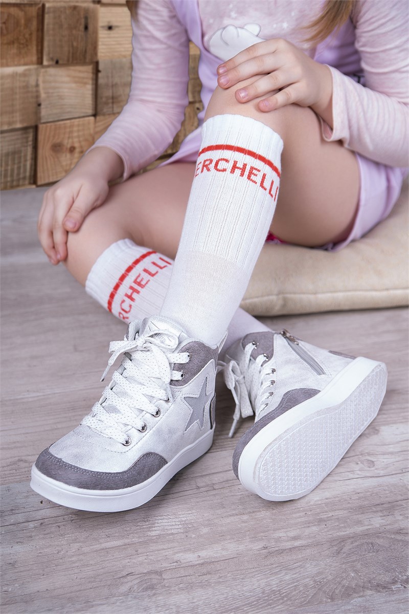Стильные детские гольфы с фирменной надписью Berchelli и широкой резинкой по верху. В упаковке 2 пары - по 1 паре каждой расцветки