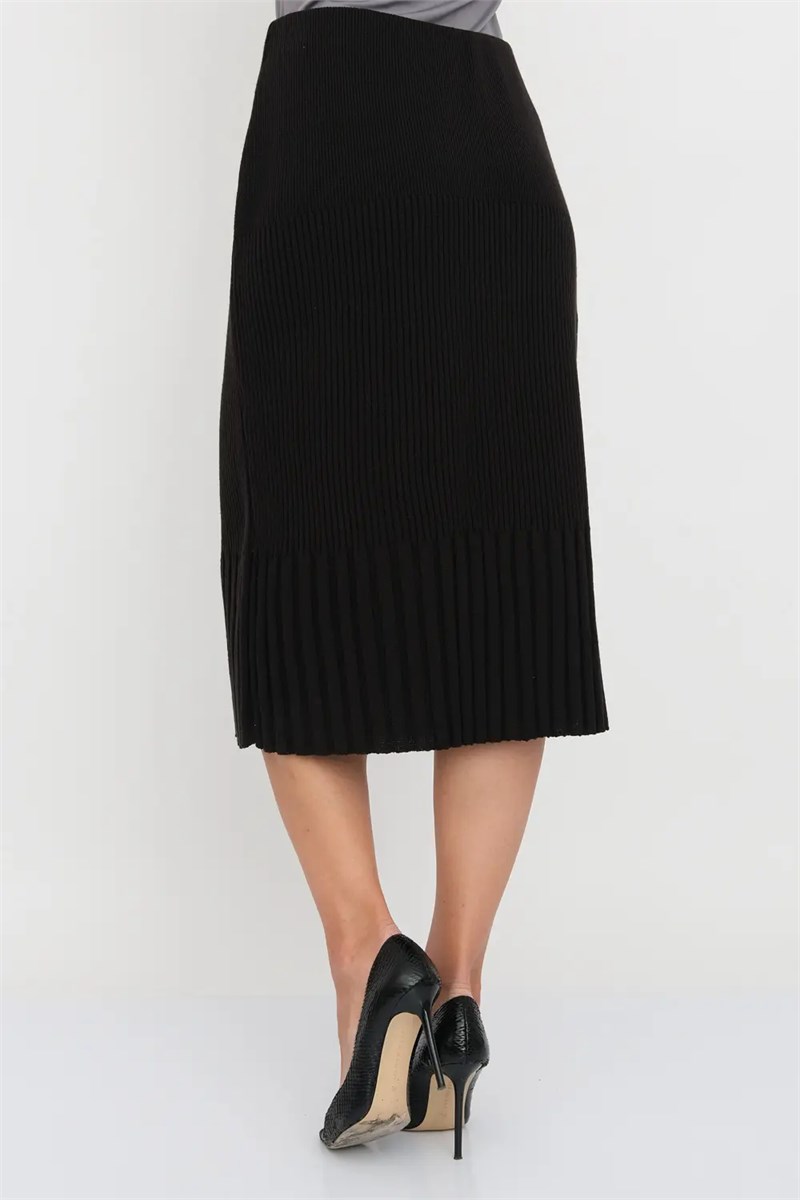 Классическая юбка полуприлегающего силуэта. Переплетение-лапша от узкой по бедрам до широкой по низу изделия. В пояс горизонтально проложена эластичная резинка.