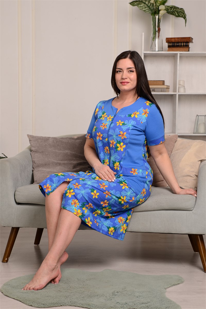 Халат женский на молнии. Дома хочется выглядеть стильно и не лишиться комфорта. Тогда обратите внимание на халат с коротким рукавом, изготовленный из натурального хлопка. Стильный халат из мягкого трикотажа может смело использоваться как банный, пляжный и хозяйственный. Женский халат на молнии с боковыми карманами. Рукав короткий. Состав: 100% хлопок. Крой халата поможет не только скрыть недостатки фигуры, но и подчеркнуть все достоинства.