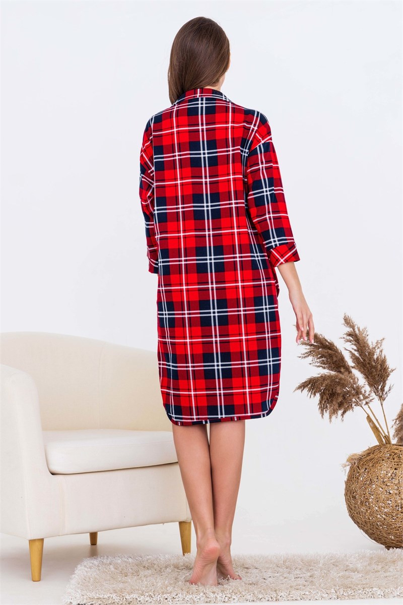 Халат на пуговицах свободного рубашечного кроя. Спущенная пройма. Рукава с манжетами. На груди карман. Низ халата обработан широкой бейкой. Длина рукава в замерах указана от точки основания шеи. Модная в этом сезоне клетка не оставит Вас без внимания, а свободный крой позволит чувствовать себя комфортно и уверенно.