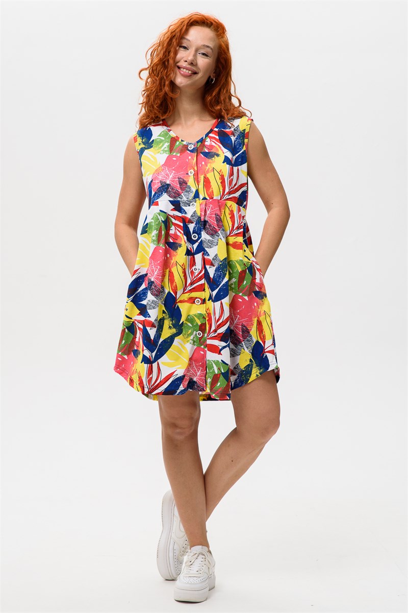 Халатик свободного силуэта с воздушными рукавами. Особенностью кроя является завышенная талия, поэтому скрывается животик. Удобные карманы. Подборт халата укреплён флизелином для укрепления петель и пуговиц.