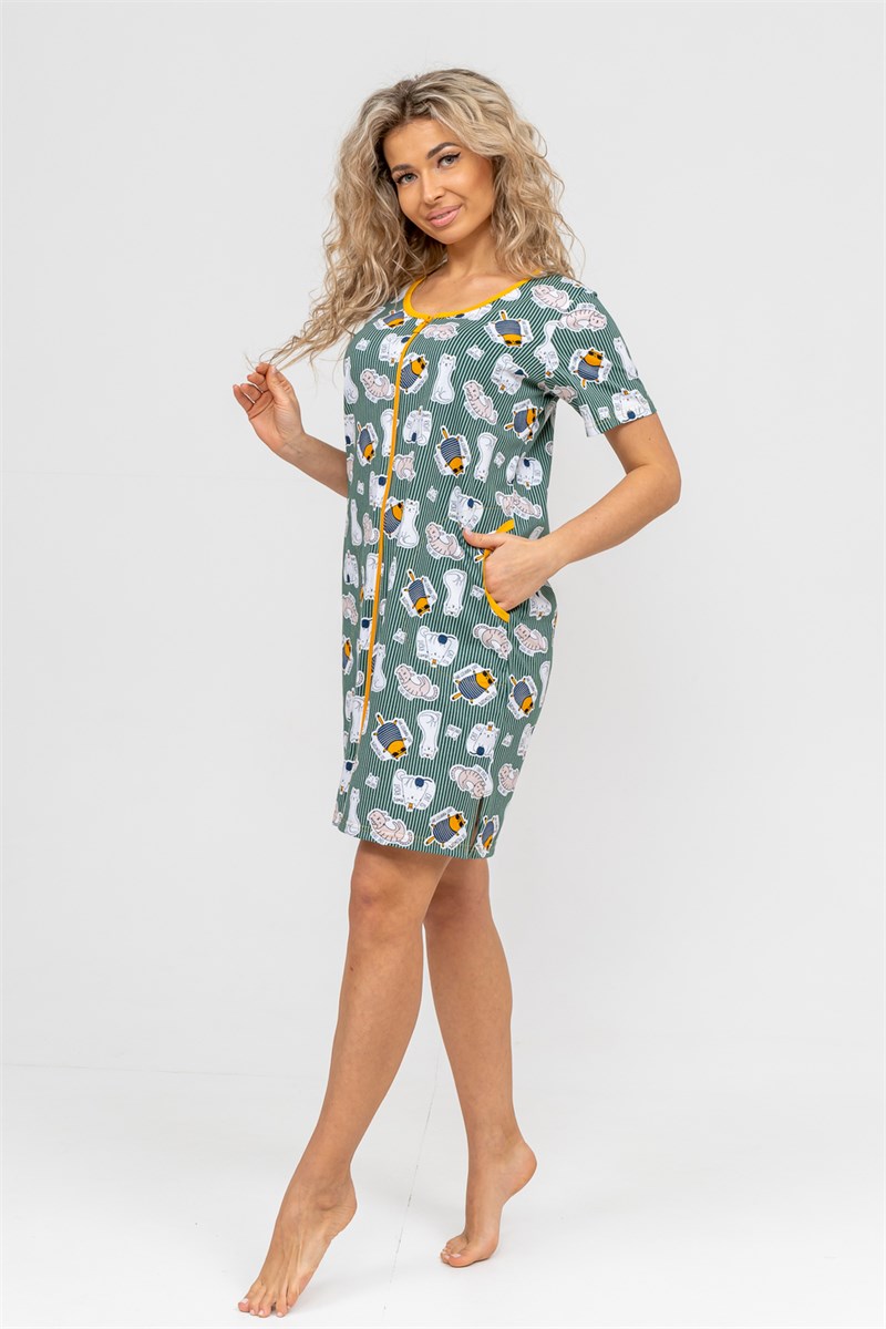 Женский халатик модных трендовых расцветок выполнен из 100% хлопчатобумажной ткани, что обеспечивает максимальный комфорт при ношении. Отличается мягкостью и приятной на ощупь текстурой. Материал прекрасно дышит. Носить такой халатик Вы сможете как летом, так и в любой другой сезон. Надёжный замок на молнии сохраняет свои свойства в течении всего времени использования. Женственный вырез и 2 боковых кармана добавляют образу шарм и делают изделие удобным и практичным. Изысканный, средней длины халатик подойдёт для любого типа фигуры. Отличная модель для дома, для роддома, после родов, для кухонных дел и хозяйственной уборки, для дачи. И конечно идеально после душа, сауны, бани и ванной. А так же будет замечательным подарком на любой праздник: 14 февраля, день рождения, 8 марта. Рекомендуется стирать в деликатном режиме 30 С. Это поможет избежать деформации и сохранить яркость цвета.