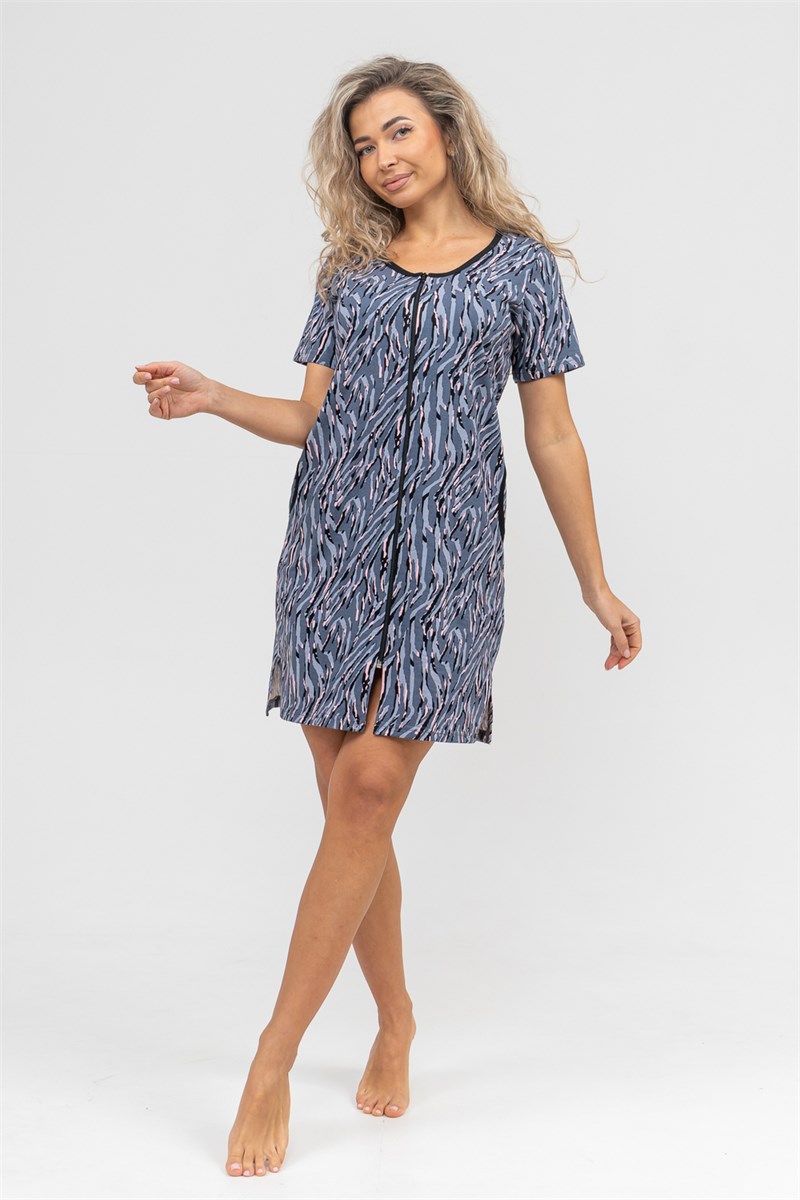 Женский халатик модной расцветки выполнен из 100% хлопчатобумажной ткани, что обеспечивает максимальный комфорт при ношении. Отличается мягкостью и приятной на ощупь текстурой. Материал прекрасно дышит. Носить такой халатик Вы сможете как летом, так и в любой другой сезон. Надёжный замок на молнии сохраняет свои свойства в течении всего времени использования. Женственный вырез и 2 боковых кармана добавляют образу шарм и делают изделие удобным и практичным. А изысканный поясок подчеркнёт вашу талию. Халатик средней длины подойдёт для любого типа фигуры. Отличная модель для дома, для роддома, после родов, для кухонных дел и хозяйственной уборки, для дачи. И конечно идеально после душа, сауны, бани и ванной. А так же будет замечательным подарком на любой праздник: 14 февраля, день рождения, 8 марта. Рекомендуется стирать в деликатном режиме 30 С. Это поможет избежать деформации и сохранить яркость цвета.