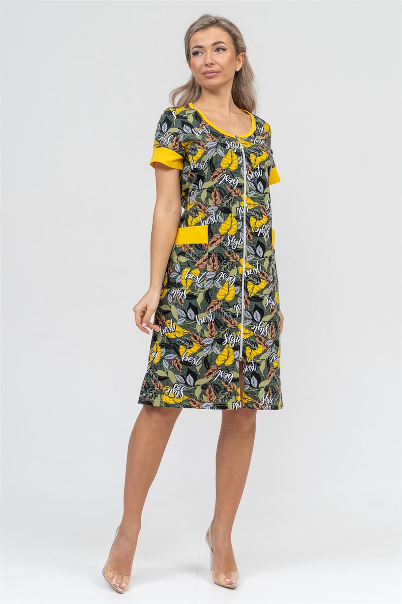 Женский халатик на молнии самая распространенная и универсальная одежда для домашнего отдыха и хозяйственных хлопот. После трудного рабочего дня, приходя домой, первым делом хочется переодеться. И данная модель это идеальный вариант среди представительниц прекрасной половины человечества. Модель выполнена из 100% хлопчатобумажной ткани. Халат так же дополняет яркая отделка по рукавам и карманам. А пояс на линии талии поможет легко смоделировать женственный силуэт и при этом Вы будете чувствовать себя легко и непринуждённо. Данная модель прекрасно подойдёт для дома, дачи и отдыха, создавая по-настоящему яркий образ и хорошее настроение!