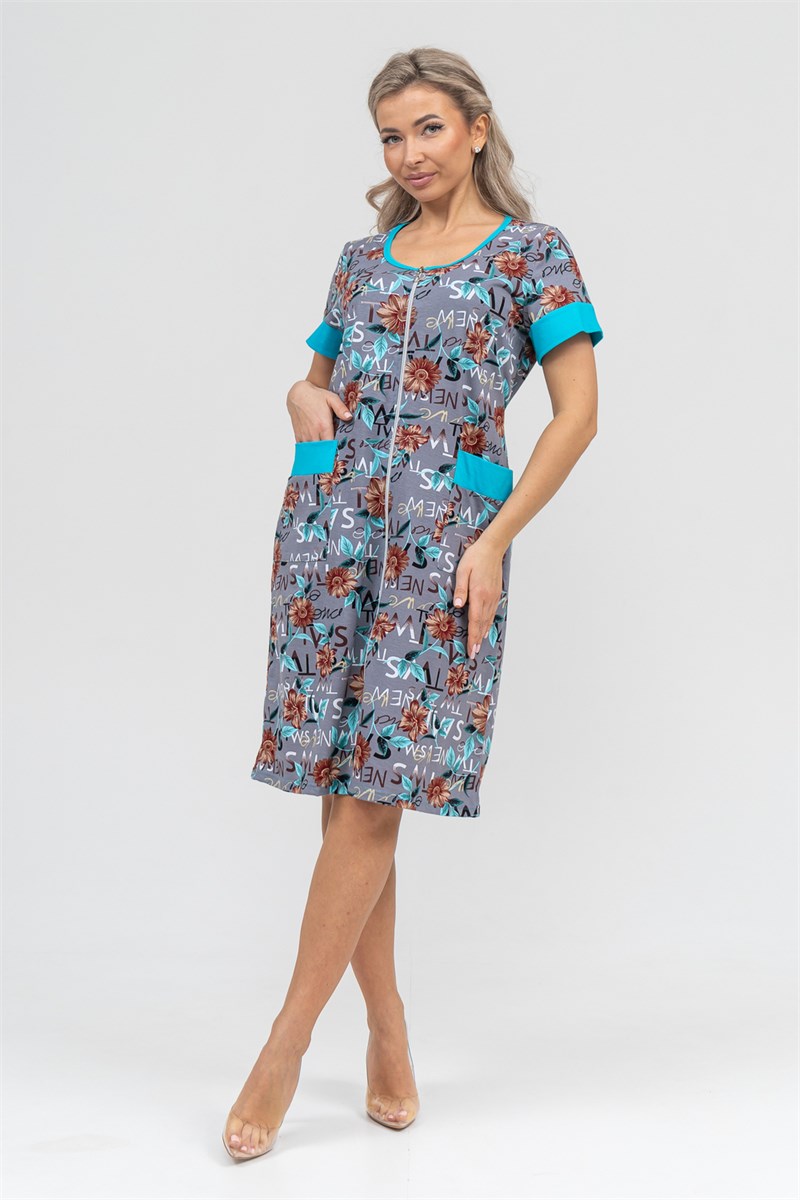 Женский халатик на молнии самая распространенная и универсальная одежда для домашнего отдыха и хозяйственных хлопот. После трудного рабочего дня, приходя домой, первым делом хочется переодеться. И данная модель это идеальный вариант среди представительниц прекрасной половины человечества. Модель выполнена из 100% хлопчатобумажной ткани. Халат так же дополняет яркая отделка по рукавам и карманам. А пояс на линии талии поможет легко смоделировать женственный силуэт и при этом Вы будете чувствовать себя легко и непринуждённо. Данная модель прекрасно подойдёт для дома, дачи и отдыха, создавая по-настоящему яркий образ и хорошее настроение!