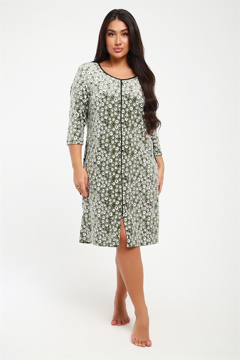 Халат женский из мягкого велюра на молнии, рукав 3/4, с карманами. Горловина и вход в карман обработаны узким кантом. Халат очень мягкий, комфортный. отлично подойдет для дома.