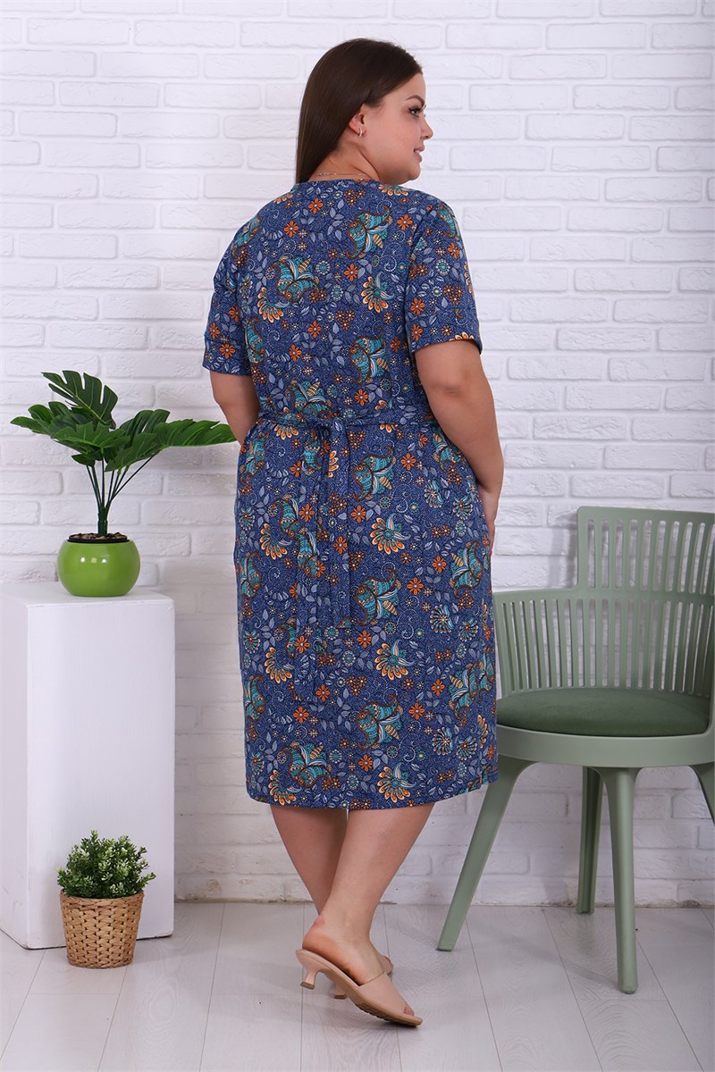 Халат женский с центральной застежкой на молнию. Рукава короткие на манжетах. Вырез горловины круглый обработан кантом. На полочках накладные карманы. На спинке по линии талии два полупояса, выходящие из боковых швов.