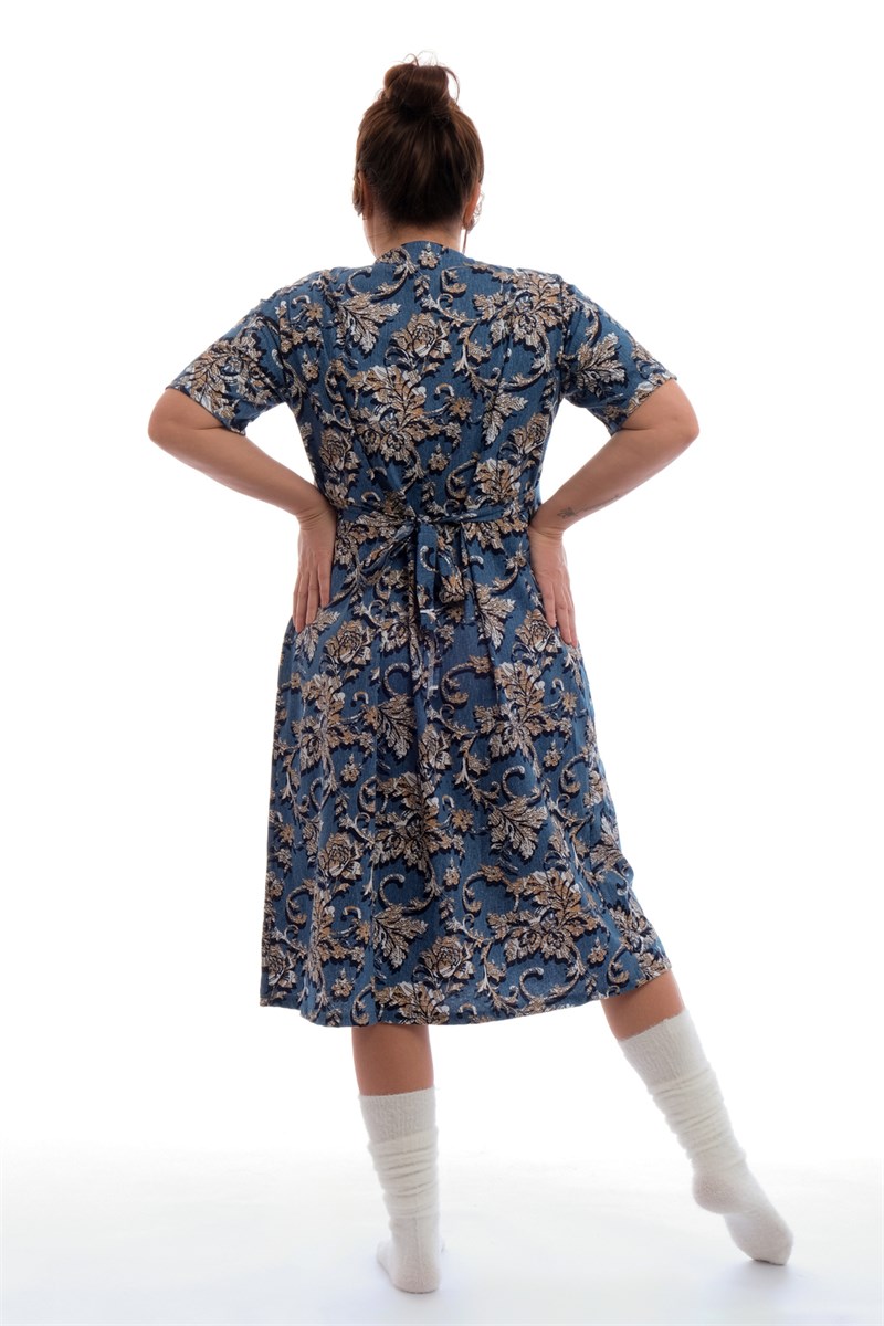 Необычное композиционное решение деталей, а также сочетание актуальной расцветки ткани создает яркий летний образ. Этот летний халат прекрасно подойдет для беременных женщин благодаря своему свободному крою, молнии и завязкам со спины, которые облегчают процесс одевания и раздевания. Кроме того, он может стать отличным выбором для поездки в отпуск на море, на дачу или для похода в бани, в сауну, в бассейн, в душ, на пляж, в ванную, для отдыха в отеле или санатории, а также на СПА или в роддом.