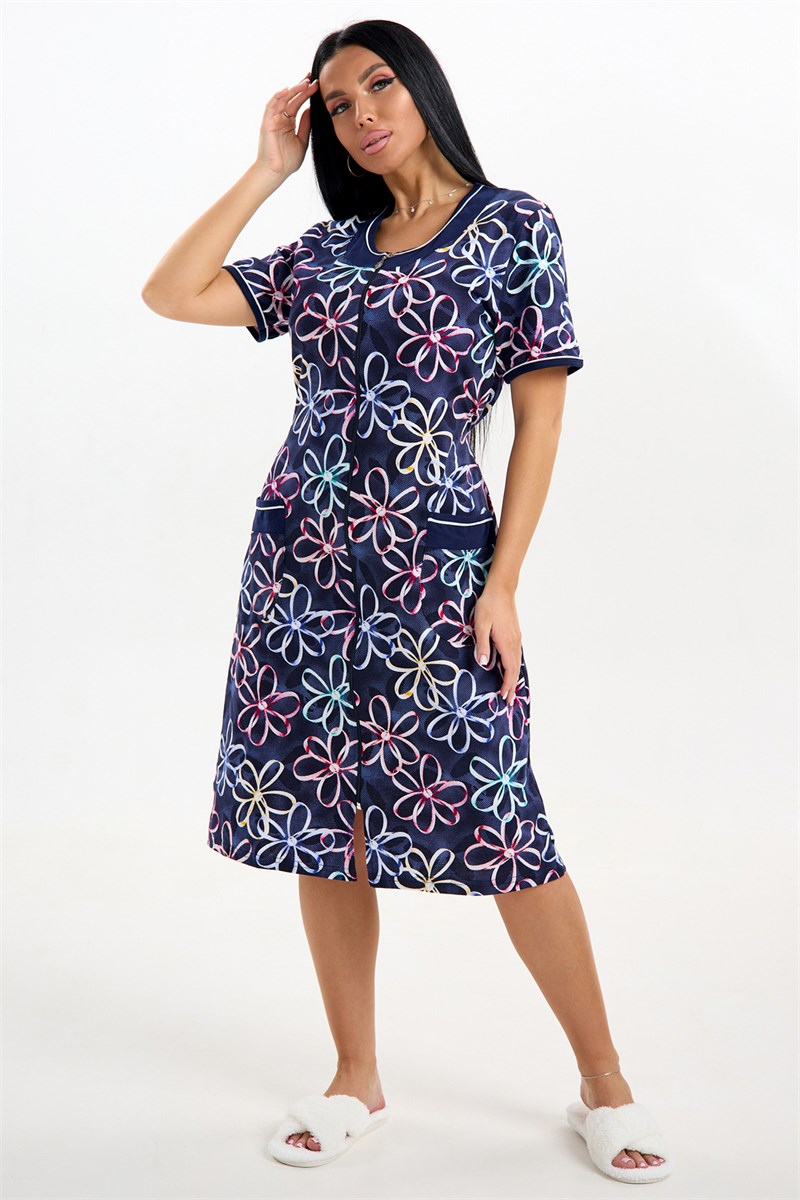 Этот халат станет отличным вариантом для домашнего использования. Он выполнен из мягкого трикотажа на основе хлопка, что обеспечивает комфорт в любое время года. Такой халатик идеально подходит для женщин, которые ценят уют и стиль в одежде. Модель предназначена для домашних дел, подойдет как для вечера, так и для утренних рутин. Изделие отличается тем, что регулируется хлястиком, что позволяет адаптировать любимый стиль к индивидуальным предпочтениям. Халаты подходят беременным и женщинам после родов за счет свободного кроя и удобства. Длинный вариант обеспечит тепло в прохладные дни, а короткий рукав добавит легкости в летние сезоны. Модель отлично будет смотреться на женщинах больших размеров, предоставляя разнообразные возможности стиля.