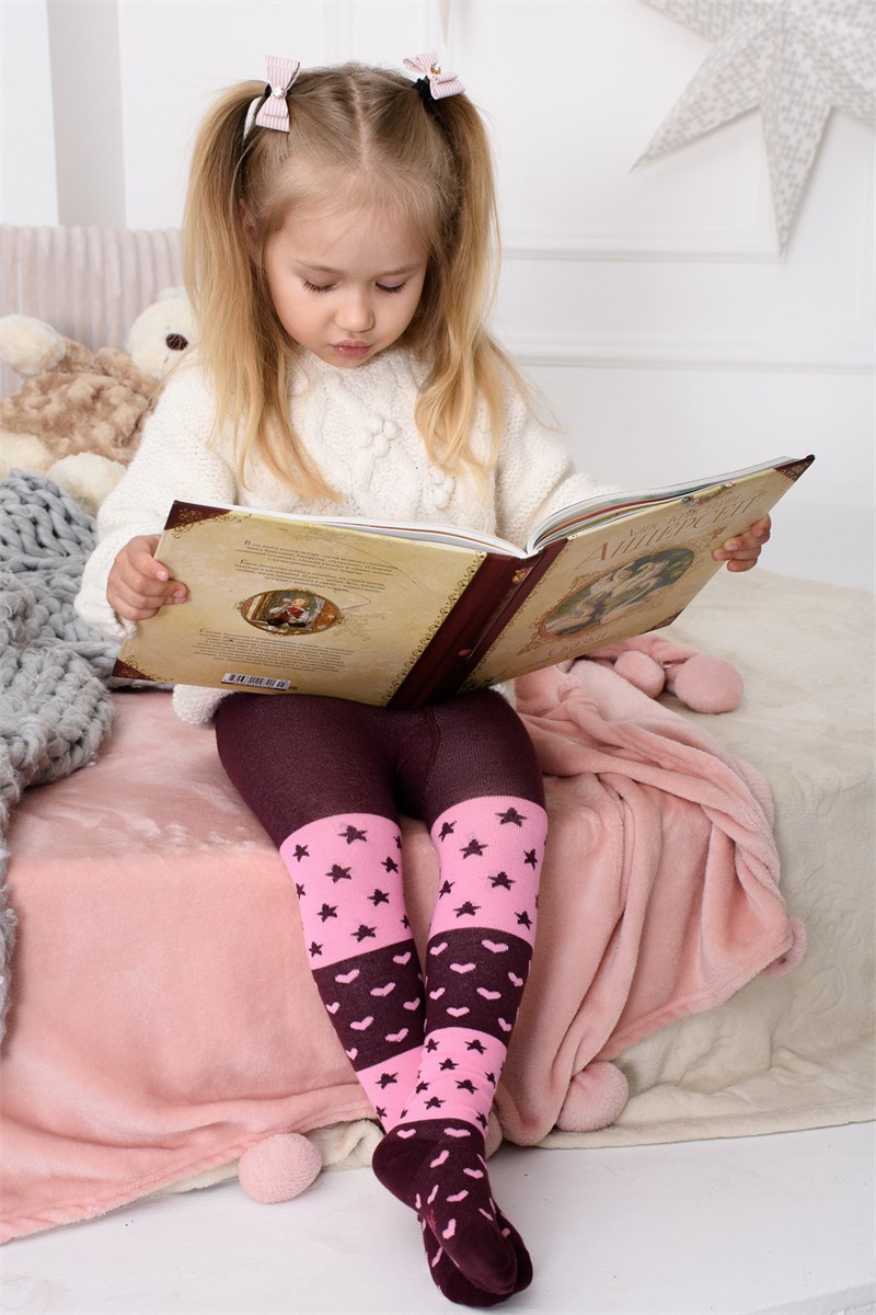 Колготки с вязаным рисунком в виде сердечек и звездочек для девочек