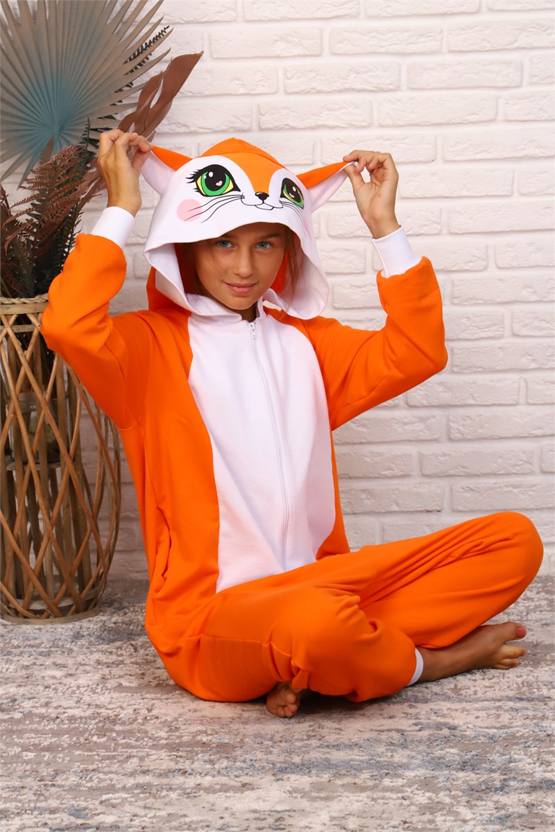 Комбинезон-кигуруми Лисичка выполнен из футера с начесом (100% хлопок). Это лучший выбор для крутой вечеринки, повседневной одежды и даже для сна. Комбинезон изготовлен из теплого материала, который легко стирается, не линяет, не теряет цвет и классно выглядит в течение долгого времени. Застегивается спереди на молнию. За счет своего свободного кроя не сковывает движений. Очень теплый, мягкий, оригинальный и веселый комбинезон.