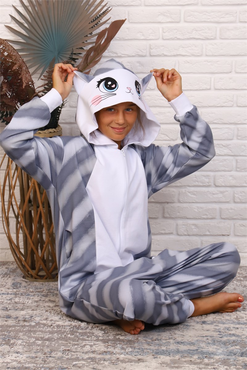 Комбинезон-кигуруми Кошечка выполнен из футера с начесом (100% хлопок). Это лучший выбор для крутой вечеринки, повседневной одежды и даже для сна. Комбинезон изготовлен из теплого материала, который легко стирается, не линяет, не теряет цвет и классно выглядит в течение долгого времени. Застегивается спереди на молнию. За счет своего свободного кроя не сковывает движений. Очень теплый, мягкий, оригинальный и веселый комбинезон.