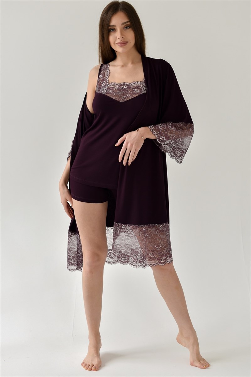 Комплект Мираж состоит из пижамы и халата. Отделан эластичным кружевом. Рукав 3/4