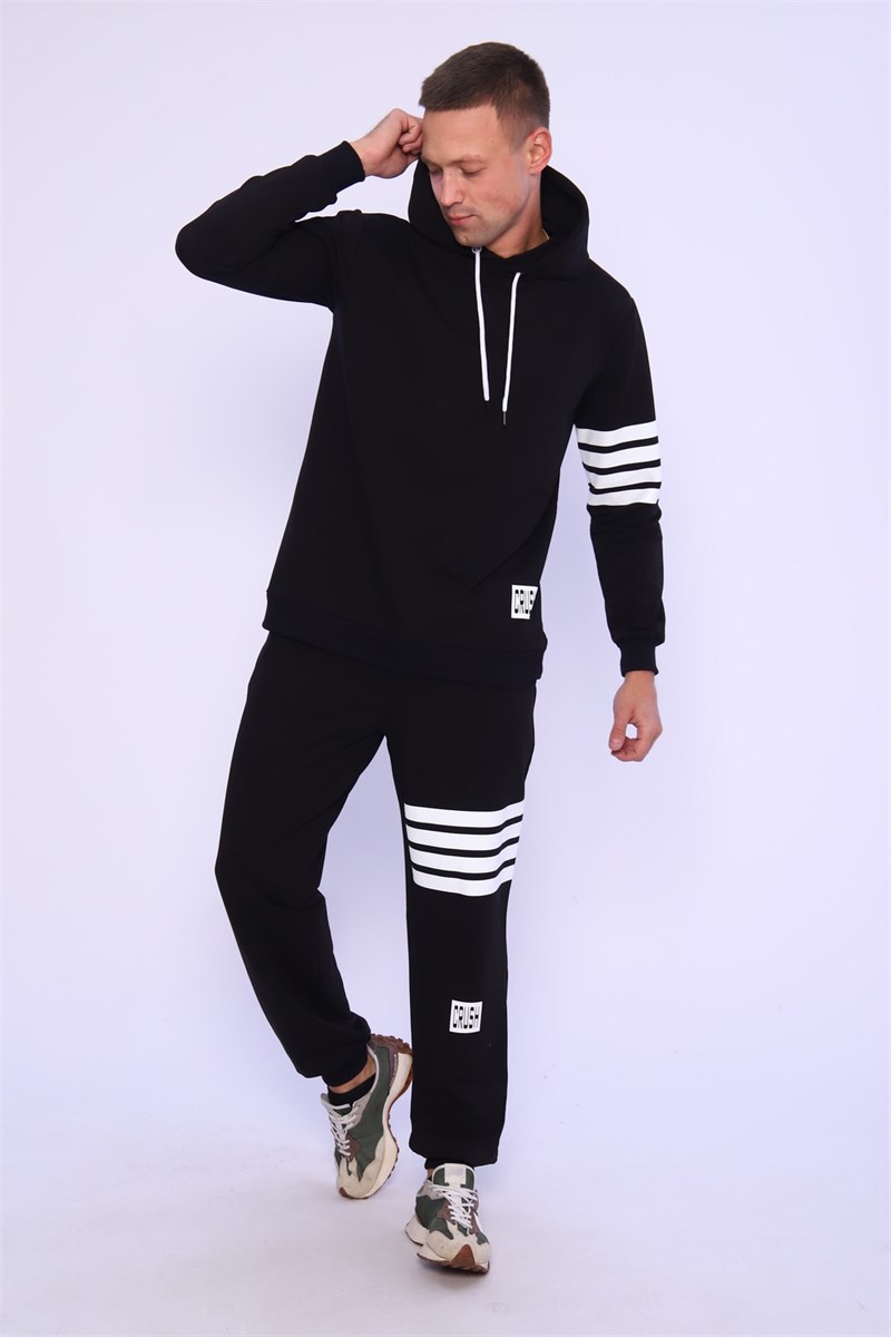 Спортивный мужской костюм отлично подойдет для тренировок дома и игр на улице. Этот модный, мягкий трикотажный костюм с прямыми и аккуратными швами. Толстовка прямого силуэта с двойным капюшоном и карманом кенгуру. Брюки на манжете с карманами в боковых швах.