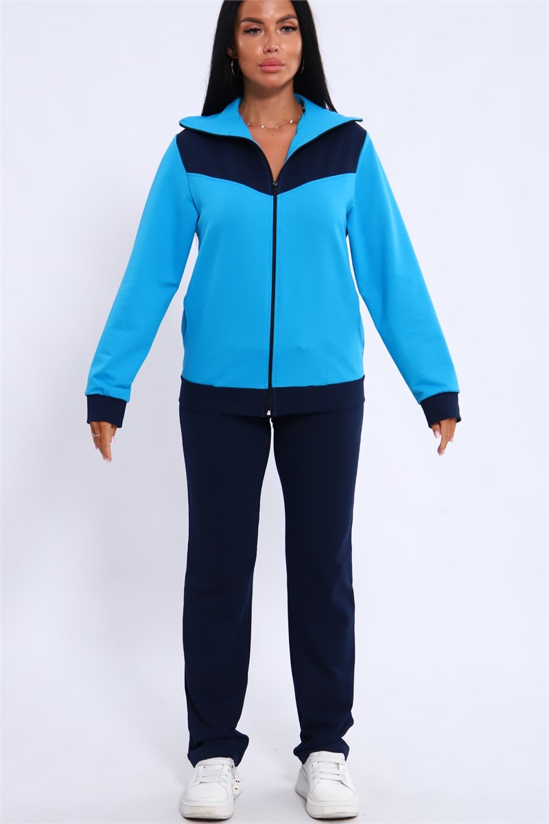 Спортивный женский костюм из эластичного футера. Кофта прямого силуэта на молнии с воротником - стойка, рукав втачной, по бокам карманы, на поясе манжет. Брюки классического кроя без карманов на притачном поясе.