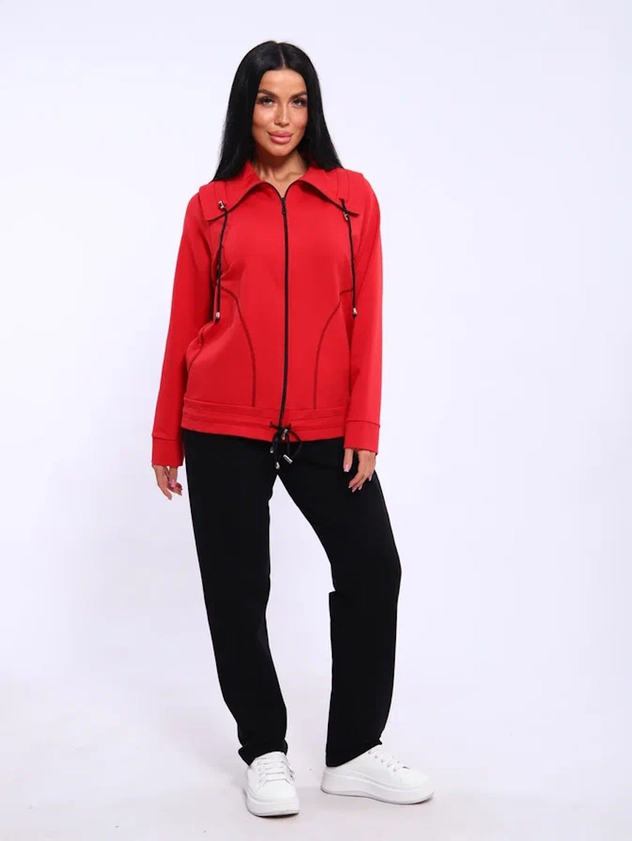 Спортивный женский костюм из эластичного футера. Брюки классического кроя без карманов на притачном поясе. Декоративный элемент в виде фиксаторов по дизайну не подбирается, может отличаться от представленного на фото.