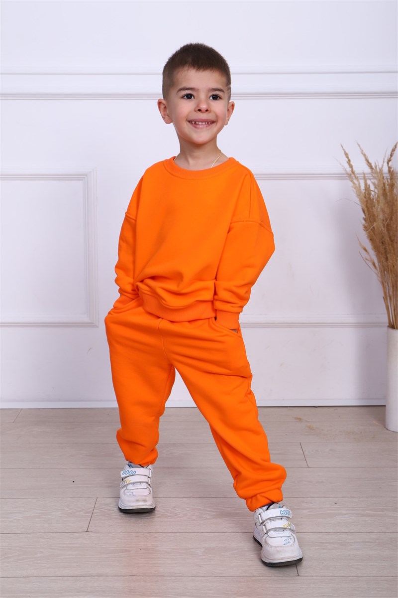 Спортивный детский костюм для мальчиков и девочек. Выполнен из трикотажного полотна футера 3х нитки диагональ петля. Яркая расцветка подойдет и для мальчика и для девочки. Толстовка свободного силуэта без капюшона, манжеты рукавов, горловина и пояс толстовки выполнены из кашкорсе. Брюки имеют притачной пояс с резинкой и карманы по бокам. Низ брюк обработан резинкой. Утепленный костюм идеальный вариант на любой сезон.