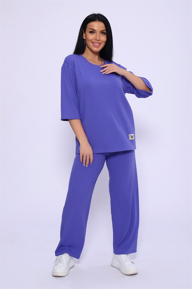 Модель свободного силуэта состоит из джемпера с рукавом 3\4 и брюк палаццо. Костюм изготовлен из модной трикотажной ткани лапша, она плотная, хорошо тянется и очень красиво струится при движении, не мнётся и эффектно смотрится с любым вашим образом. Этот костюмчик будет уместен и дома, и на прогулках, и в поездках на отдых. В замерах длина рукава указана от начала горловины