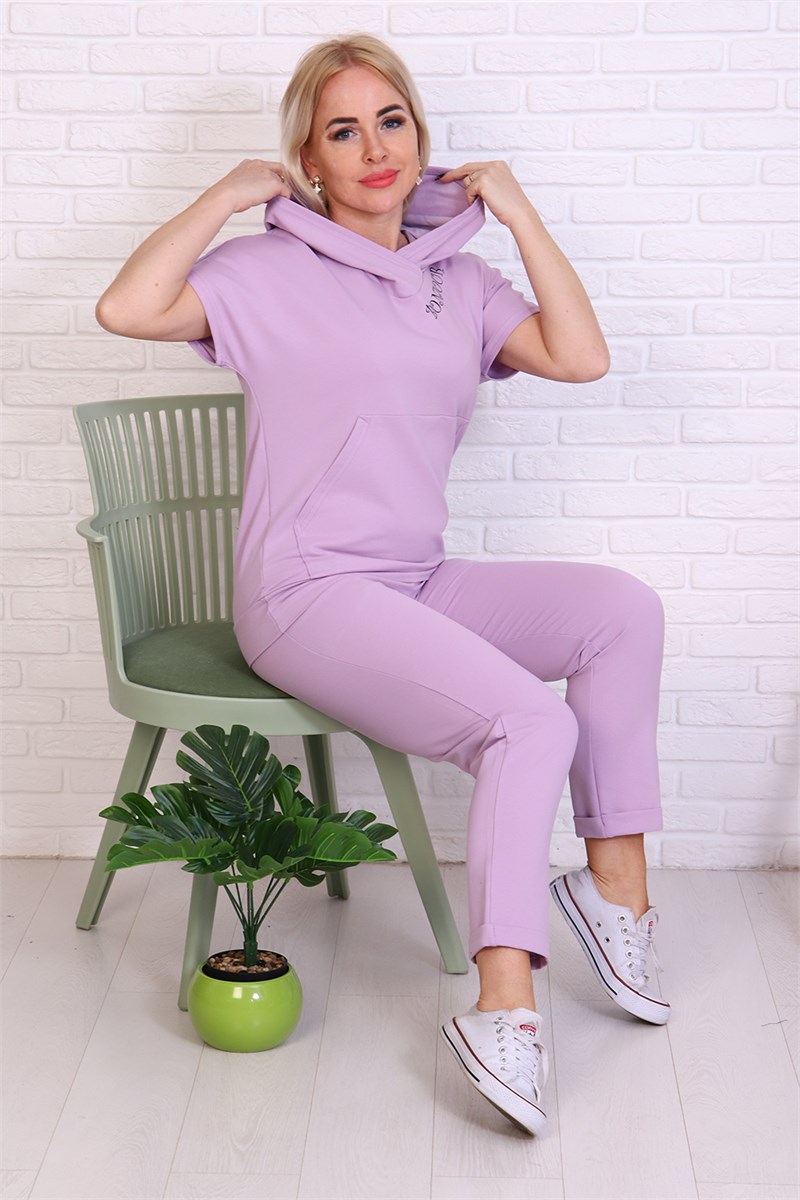 Молодежный костюм с капюшоном. Кофта свободного кроя, карман кенгуру. Неброская печать возле капюшона. Рукав спущенный. Брюки укороченные с манжетом. Карман с подкроенным бочком. Модный стильный костюмчик на любой вкус.
