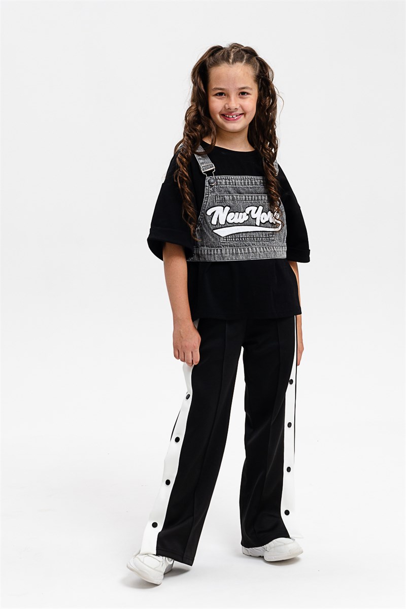Костюм тройка для девочки. Футболка оверсайз из 100% хлопка. Жилетка из плотной ткани джинс. На жилетке вышивка.