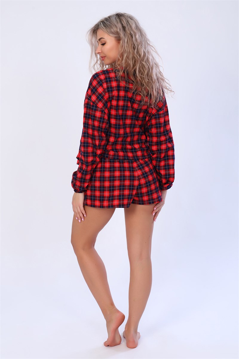 Женский костюм 4-ка из 100% хлопка - это стильный и идеально подобранный домашний лук для себя или в качестве подарка, который можно варьировать в разных вариантах на Ваш вкус. А натуральная, мягкая и гипоаллергенная ткань позволит почувствовать внутреннюю гармонию и домашний уют. Рубашка с V-образным вырезом, длинным рукавом на резинке и застегивающаяся на кнопки, добавляет к обоим возможным образам стильность, лёгкость и неординарность. А современные брюки палаццо с удобными боковыми карманами и поясом, выполненным на специализированной машине, можно легко заменить легкими струящимися укороченными шортиками и окунуться в приятный мир грёз. Данный комплект универсален, его могут носить дети, подростки, девушки и женщины. Всё это мы совместили в нашей уютной пижаме, чтобы Вы могли не только приятно встречать новый день, но также отдыхать и заниматься домашними делами.