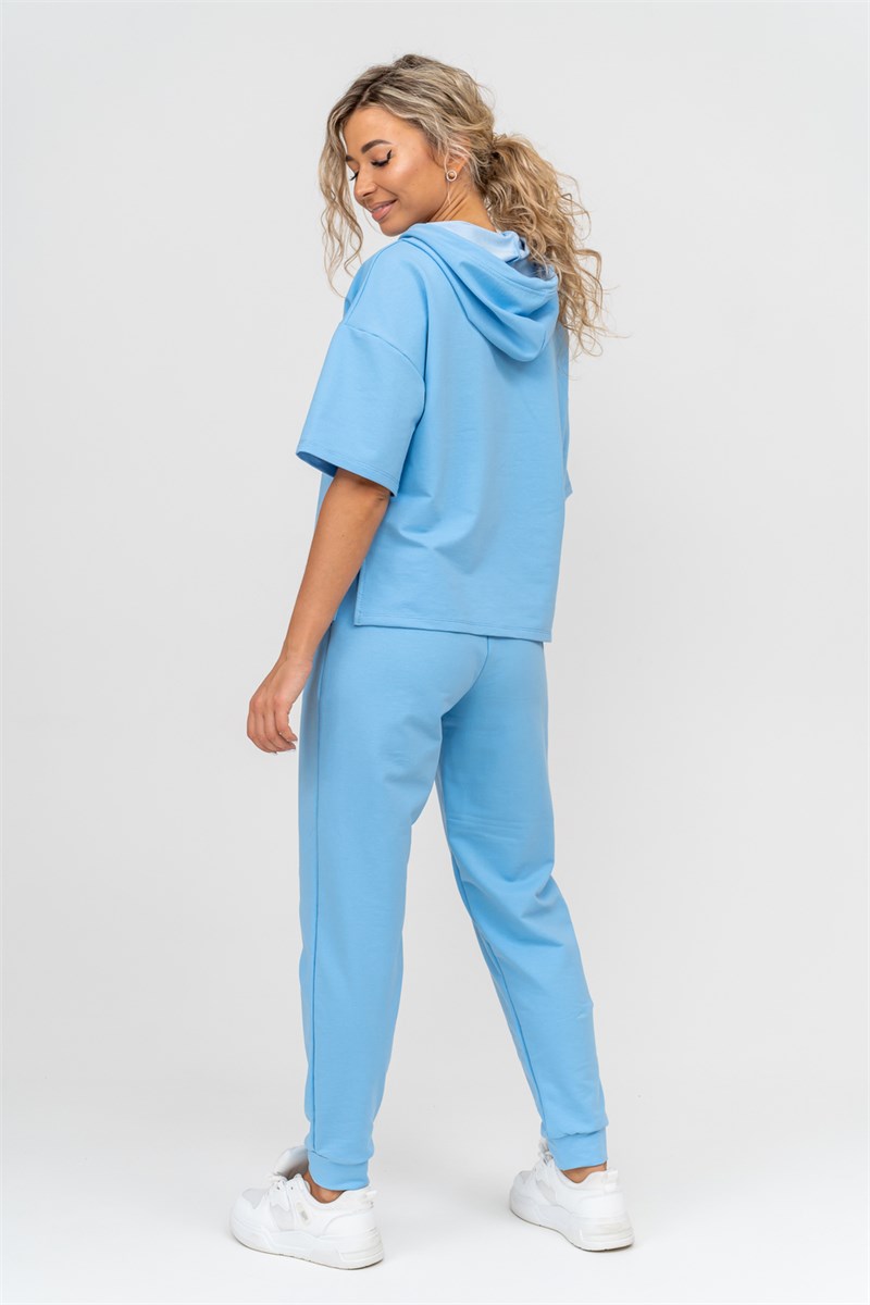 Женский костюм выполнен из футера высокого качества с хлопком и небольшим добавлением полиэстера и лайкры, что позволяет изделию не скатываться и оставлять идеальный внешний вид на долгое время. Костюм состоит из толстовки и брюк. Толстовка с капюшоном и шнурком. Линия плеча спущена, рукав укороченный, по бокам имеются небольшие разрезы. Брюки представлен с вместительными боковыми карманами. Манжеты брюк выполнены из основного материала, а пояс на специализированной поясной машине, что делает швы ровными и качественными. Свободный крой прекрасно будет смотреться на дамах с любыми формами. Костюм такого плана представлен в широкой размерной сетке, что позволяет выбрать его как девушке, так и женщине. Однотонный костюм модных расцветок будет удачным выбором для поездок в отпуск, на пикник, для школы, для активного отдыха и прогулок по городу. Будет гармонично сочетаться как с кроссовками, так и с туфлями, балетками или босоножками. Используя эту модель в качестве домашнего костюма, Вы поймёте, что это именно тот самый идеальный вариант, в котором будете себя чувствовать удобно, комфортно и современно. Костюм с брюками - это настоящая находка для тех, кто ценит свою индивидуальность! Ориентируясь по таблице замеров, обратите внимание, что замеры длины рукава проводились от точки основания шеи.