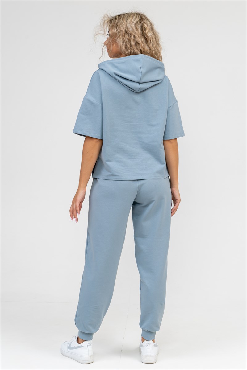 Женский костюм выполнен из футера высокого качества с хлопком и небольшим добавлением полиэстера и лайкры, что позволяет изделию не скатываться и оставлять идеальный внешний вид на долгое время. Костюм состоит из толстовки и брюк. Толстовка с капюшоном и шнурком. Линия плеча спущена, рукав укороченный, по бокам имеются небольшие разрезы. Брюки представлены с вместительными боковыми карманами. Манжеты брюк выполнены из основного материала, а пояс на специализированной поясной машине, что делает швы ровными и качественными. Свободный крой прекрасно будет смотреться на дамах с любыми формами. Костюм такого плана представлен в широкой размерной сетке, что позволяет выбрать его как девушке, так и женщине. Однотонный костюм модных расцветок будет удачным выбором для поездок в отпуск, на пикник, для школы, для активного отдыха и прогулок по городу. Будет гармонично сочетаться как с кроссовками, так и с туфлями, балетками или босоножками. Используя эту модель в качестве домашнего костюма, Вы поймёте, что это именно тот самый идеальный вариант, в котором будете себя чувствовать удобно, комфортно и современно. Костюм с брюками - это настоящая находка для тех, кто ценит свою индивидуальность! Фурнитура данного изделия ( шнурок ) может отличаться от фото. Ориентируясь по таблице замеров, обратите внимание, что замеры длины рукава проводились от точки основания шеи.