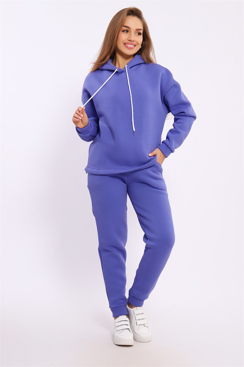 Женский модный костюм выполнен из футера 3-х нитки с начёсом - это самый толстый, плотный и тёплый вид трикотажа в своей группе. Данный вид футера имеет множество достоинств: натуральный состав, теплорегуляция, гипоаллергенность, прочность, формоустойчивость (при правильном уходе и стирке 30 - 40 С). Костюм состоит из толстовки и брюк. Толстовка с капюшоном и шнурком. Линия плеча спущена, длинный рукав. По низу толстовки имеется резинка с фиксатором, с помощью которой Вы можете собрать изделие как вам хочется и нравится. Брюки представлены с вместительными боковыми карманами. Манжеты брюк выполнены из основного материала, а пояс на специализированной поясной машине, что делает швы ровными и качественными. Свободный крой прекрасно будет смотреться на дамах с любыми формами. Костюм такого плана представлен в широкой размерной сетке, что позволяет выбрать его как девушке, так и женщине. Однотонный костюм модных расцветок будет удачным выбором для поездок в отпуск, на пикник, для школы, для активного отдыха и прогулок по городу. Будет гармонично сочетаться как с кроссовками, так и с ботинками. Используя эту модель в качестве домашнего костюма, Вы поймёте, что это именно тот самый идеальный вариант, в котором будете себя чувствовать удобно, комфортно и современно. Костюм с брюками - это настоящая находка для тех, кто ценит свою индивидуальность!