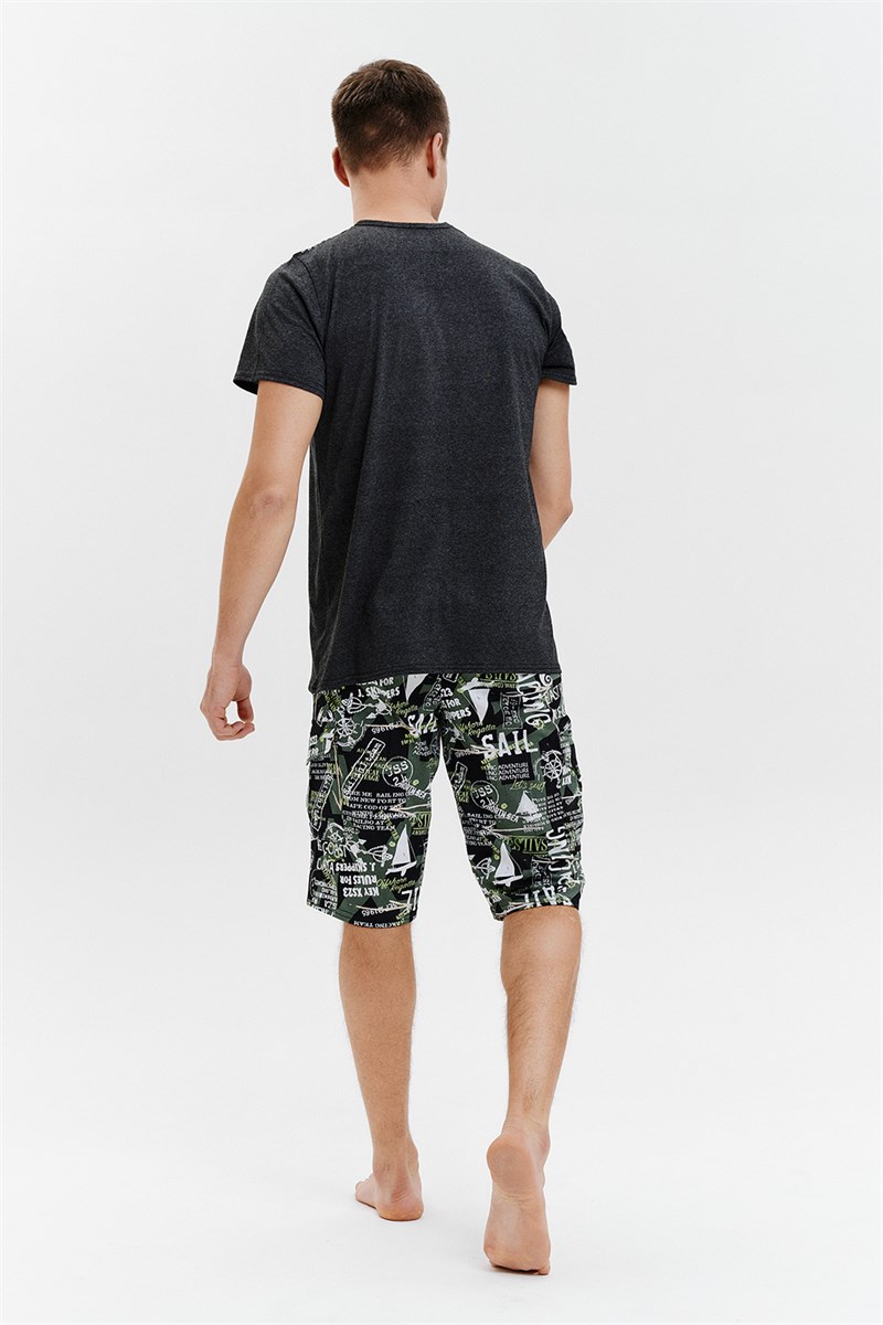 Мужской костюм. В комплекте футболка классического кроя с коротким рукавом. Яркие шорты с карманами, длина чуть ниже колена.