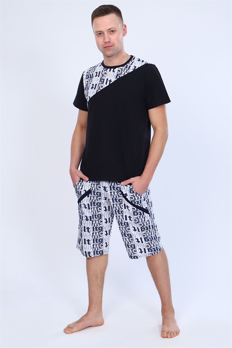 Мужской костюм состоит из футболки и бриджей. Бриджи с карманами, длина чуть ниже колена. Есть черный и серый цвет, состав серого цвета верх: 60% хб + 40% ПЭ; низ: 60% ХБ+ 40% ПЭ и черного цвета верх: 55% хб + 40% ПЭ + 5% эластан; низ: 60% хб + 40% ПЭ. Комплект костюма состоит из широкого размерного ряда. Отличный и удобный вариант на каждый день.
