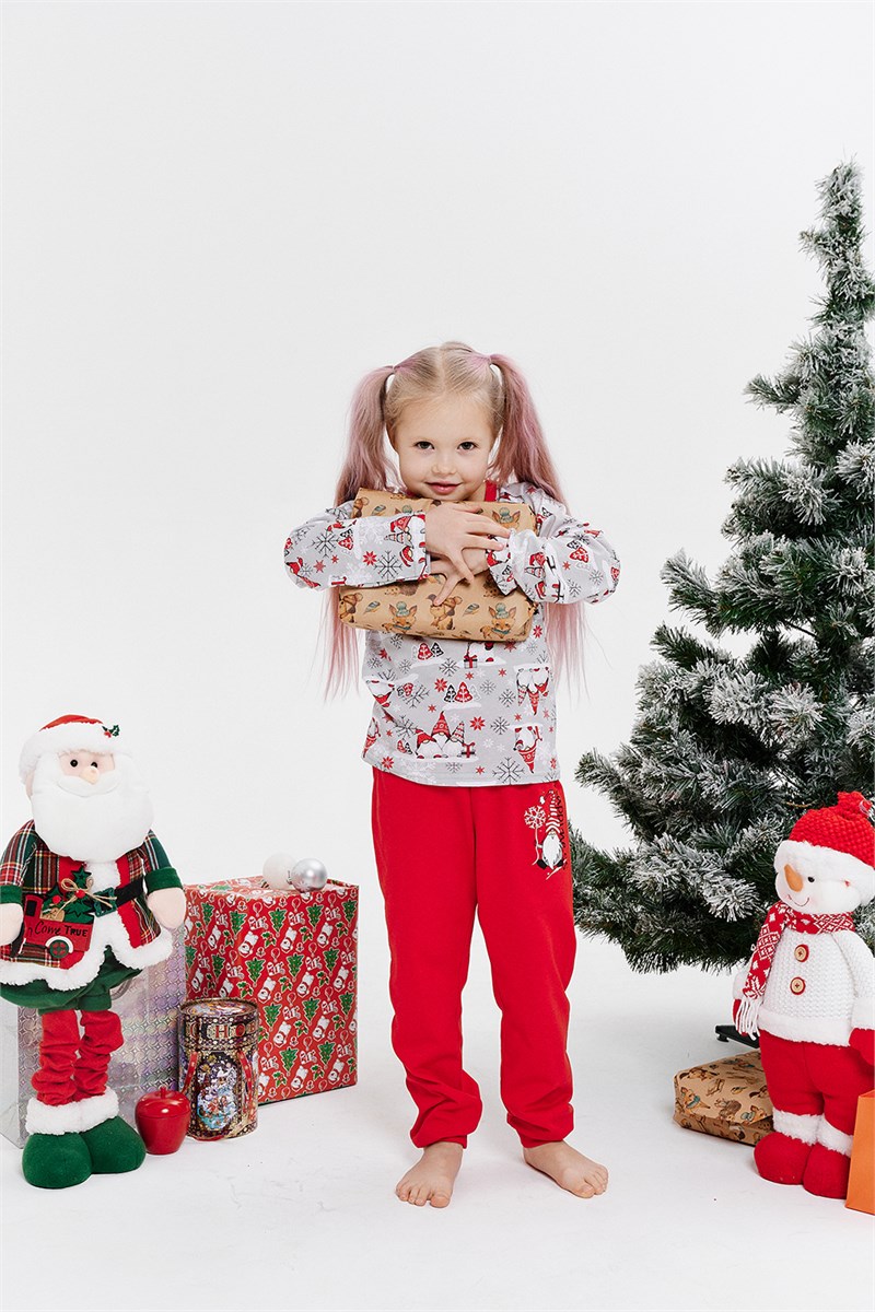 Костюм детский для девочек из кулирного полотна состоит из кофты и брюк. Кофта прямая, горловина круглая, обработана окантовкой, рукав длинный, реглан, низ изделия обработан на плоскошовной машине. Брюки прямые, верх на поясе с резинкой, спереди на брюках принт, низ изделия на плоскошовной машине. Данный костюм из серии Family look, к нему можете приобрести женский костюм: 42275, детский костюм для мальчиков: 42277, мужской костюм: 42274.