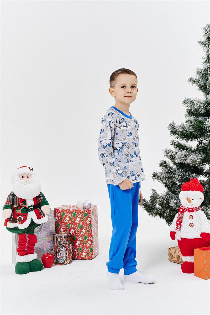 Костюм детский для мальчиков из кулирного полотна состоит из кофты и брюк. Кофта прямая, горловина круглая, обработана окантовкой, рукав длинный, реглан, низ изделия обработан на плоскошовной машине. Брюки прямые, верх на поясе с резинкой, спереди на брюках принт, низ изделия на плоскошовной машине. Данный костюм из серии Family look, к нему можете приобрести женский костюм: 42275, детский костюм для девочек: 42276, мужской костюм: 42274.