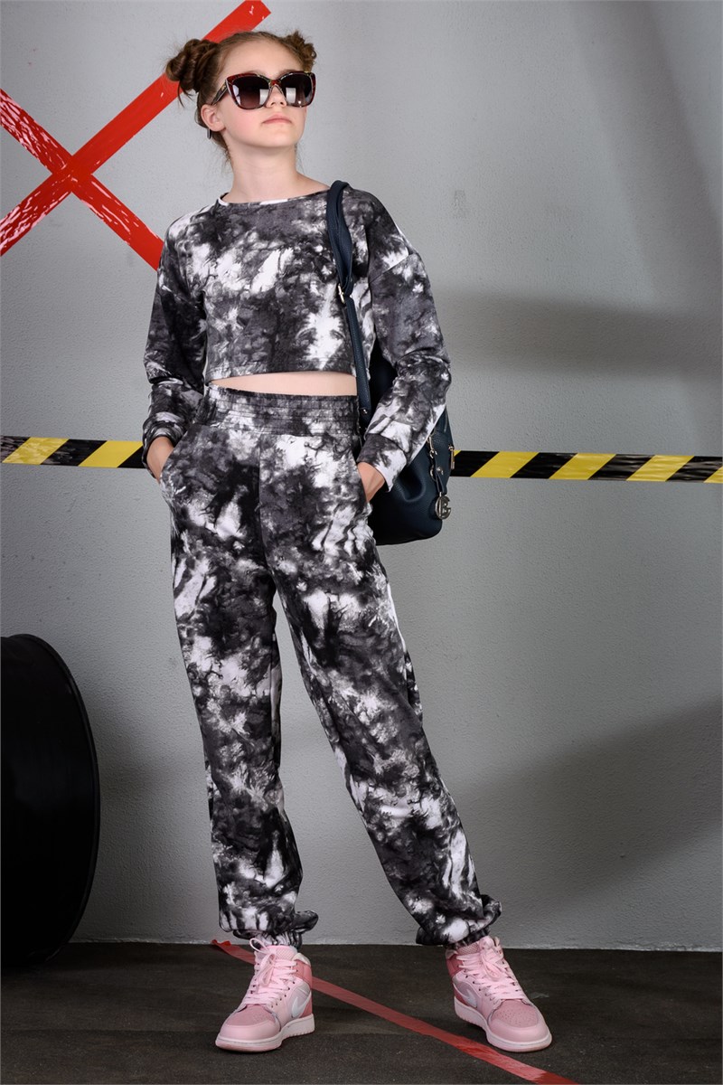 Стильный детский костюм из футера тай-дай, состоящий из кроп-топа с длинным рукавом и джоггерами с завышенной талией. Толстовка со спущенным плечиком, рукава на манжетах. Брюки с широкой резинкой, которая комфортно прилегает к вашему телу. Так же есть взрослый вариант модели 4437.