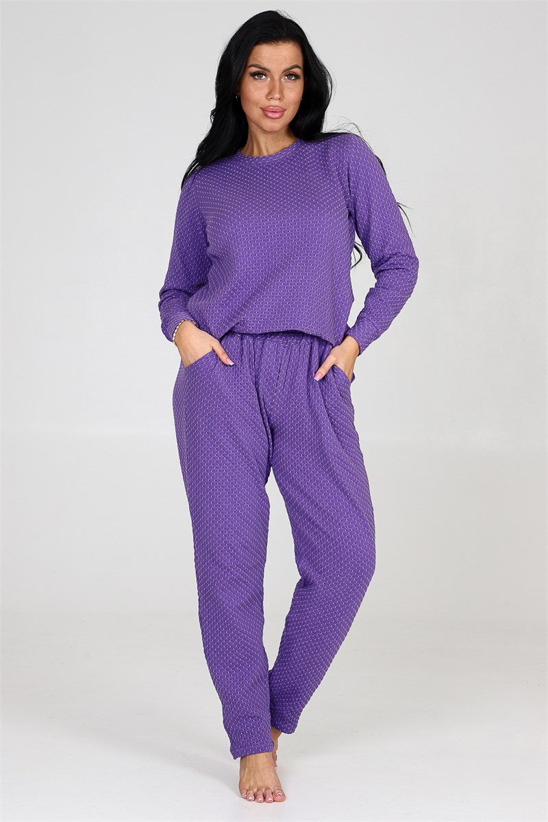 Легкий женский костюм прямого силуэта. Двойка выполнена в свободном стиле. Свитшот с округлой горловиной, на рукавах манжеты, снизу на кофте пояс. Брюки достаточно просторные, с поясом на резинке и с боковыми карманами. Комплект идеально подойдет для повседневной жизни, домашних дел и прогулок.