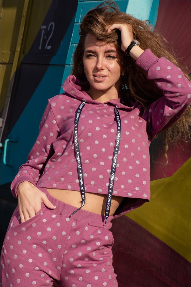 Молодежный костюм из футера толстовка + брюки. Толстовка укороченная, с капюшоном с длинными рукавами на манжетах из кашкорсе. Брюки с карманами, пояс и манжеты из кашкорсе