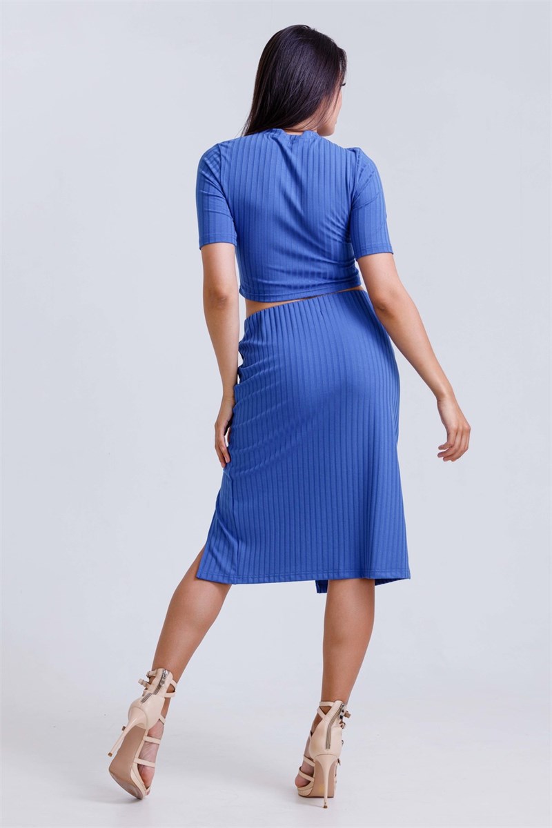 Летний женский костюм с юбкой, с завышенной талией, с разрезом и классическим топом придаст элегантность Вашему образу. Удлиненная юбка с разрезом выглядит как более классический вариант или для более сексуального и запоминающегося образа, дополняет данный костюм классический топ с закрытым декольте на груди, что придаст вашему образу скромность. Разрез на юбке не сковывает движения при ходьбе и придаёт образу особое женское очарование. Утонченный женственный костюм подчеркнёт вашу фигуру. Женский костюм отлично подойдёт для вечернего образа, фотосессии, пляжной моды, идеальный вариант для занятия танцами.