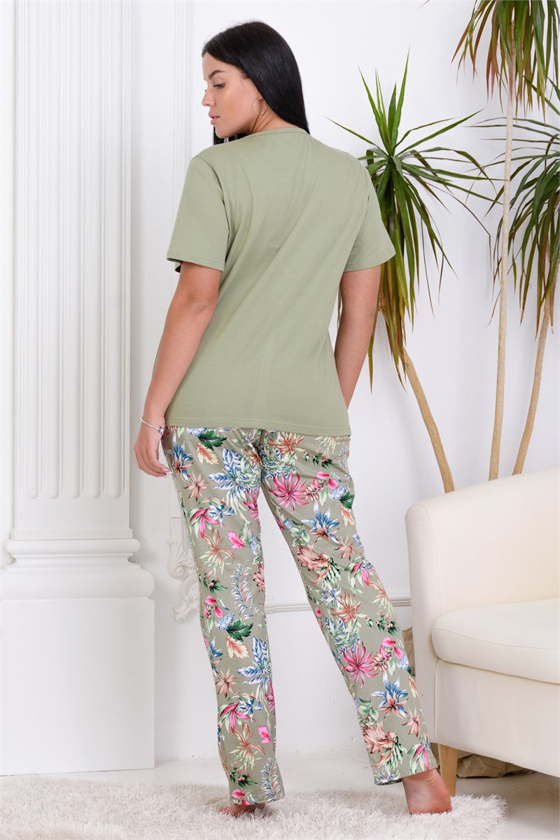 Женский костюм из кулирки, футболка+брюки, футболка из однотонной ткани с печатью, рукава короткие, а брюки из набивной ткани с карманами