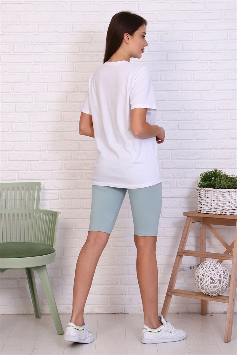 Молодежный костюм футболка и велосипедки. Футболка из кулирки 100% хлопок свободного кроя, стиль oversize, втачным коротким рукавом горловина округлой формы. На полочке изделия принт. Низ рукава и низ изделия подгибка. Велосипедки из кулирки с лайкрой облегающего силуэта без бокового шва. Низ изделия подгибка.